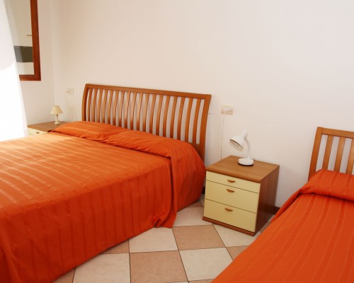 2 camere da letto, una matrimoniale e una matrimoniale + letto singolo, 2 bagni con doccia. Due posti auto a 250 metri dal residence. Servizio spiaggia compreso (due ombrellone e quattro lettini).