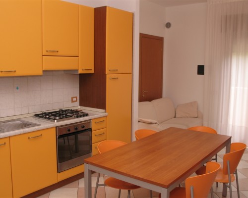 n.8 liegt im 2° Stock (mit Aufzug) und verfügt über Wohnraum-Kochnische mit Doppelcouch und  Balkon, Doppelzimmer, Zimmer mit Bett 1u.Halbe Plaetz, Badezimmer.